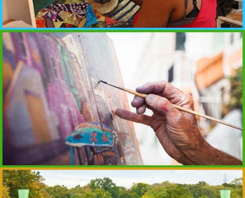 the artist / paints a paiting / the park