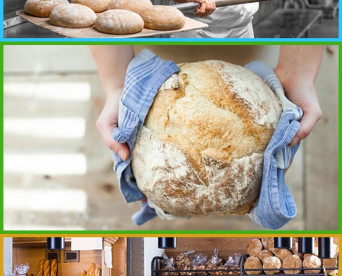 the baker / bakes a bread / the bakery