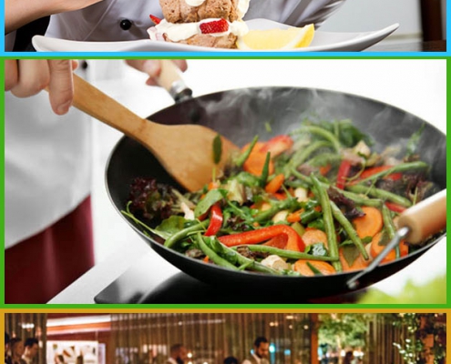 the chef / cooks delicious food / the restaurant