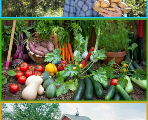 the farmer / grows vegetables / the farm