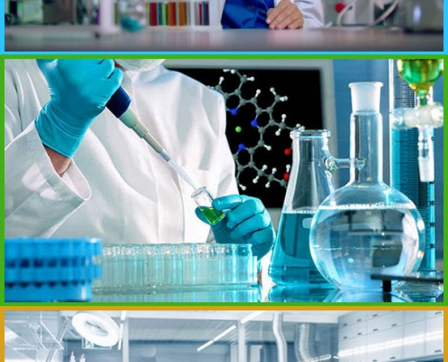 the scientist / does an experiment / the laboratory