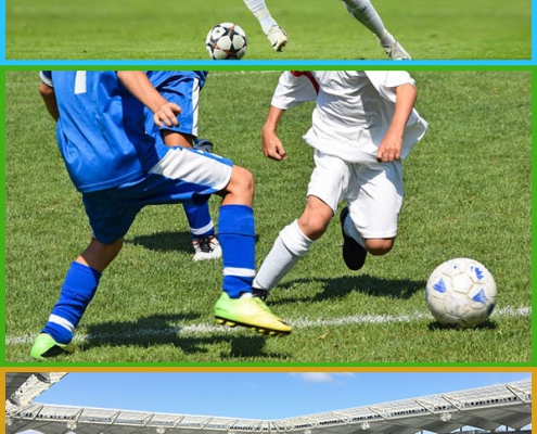 the soccer player / plays soccer / the stadium